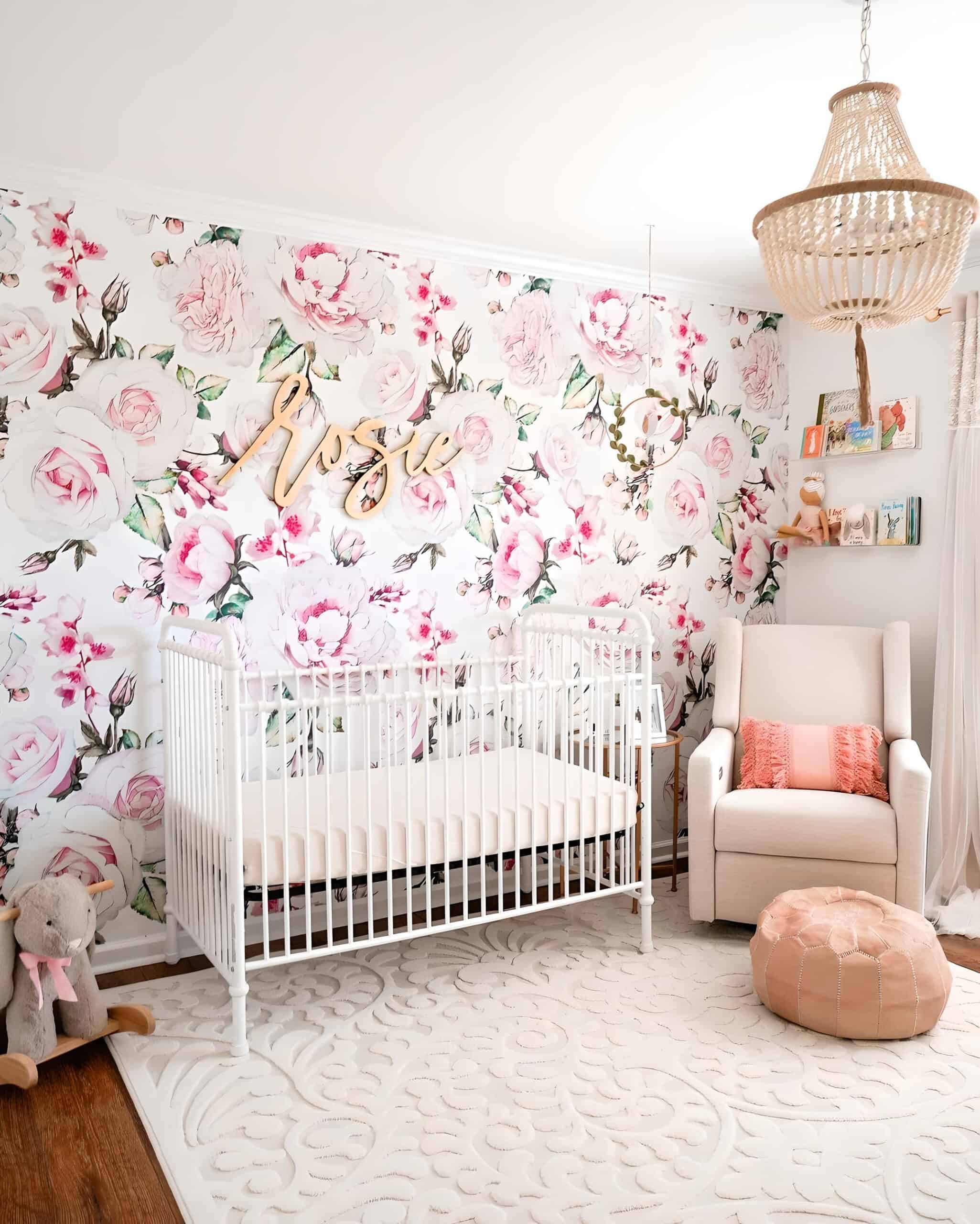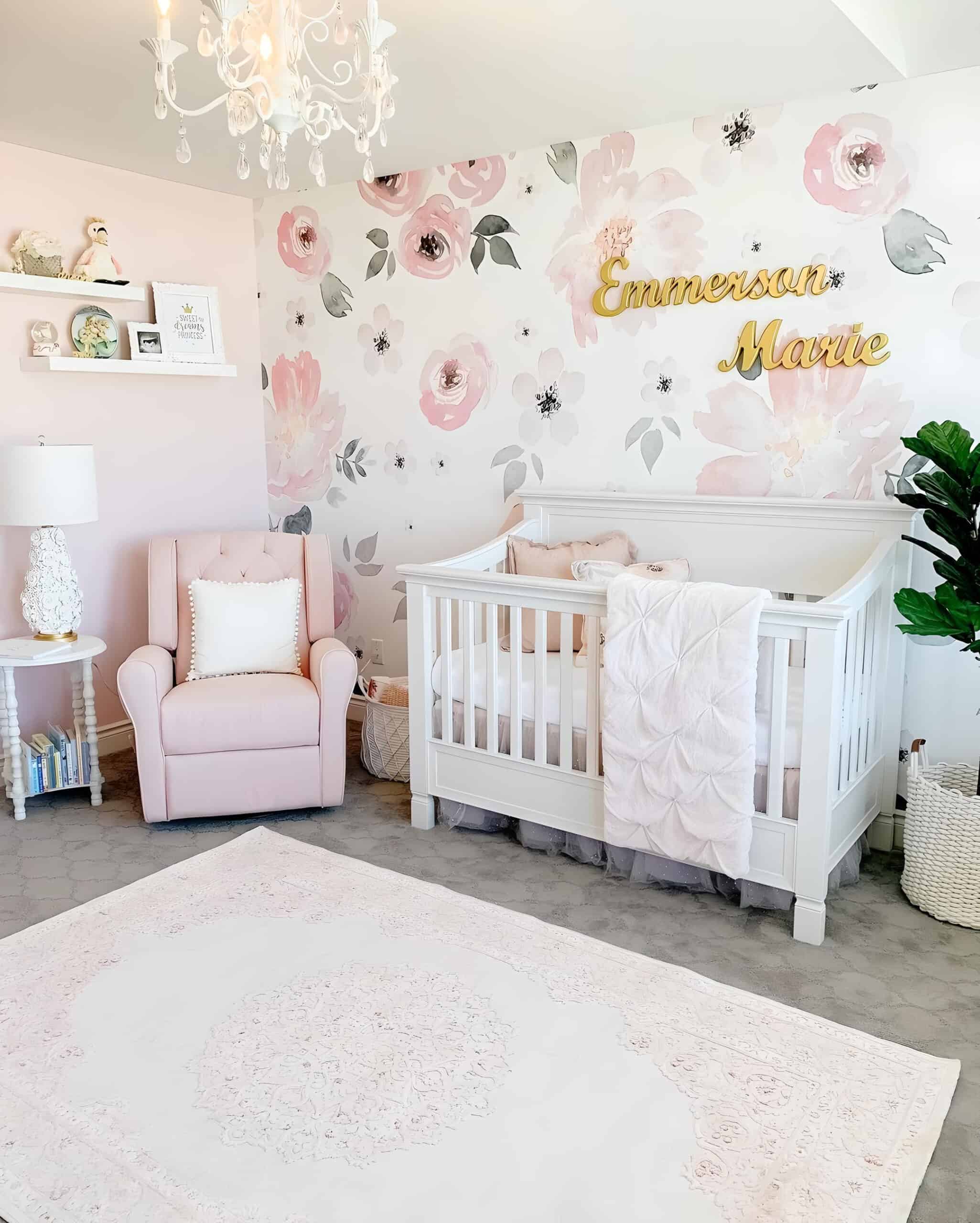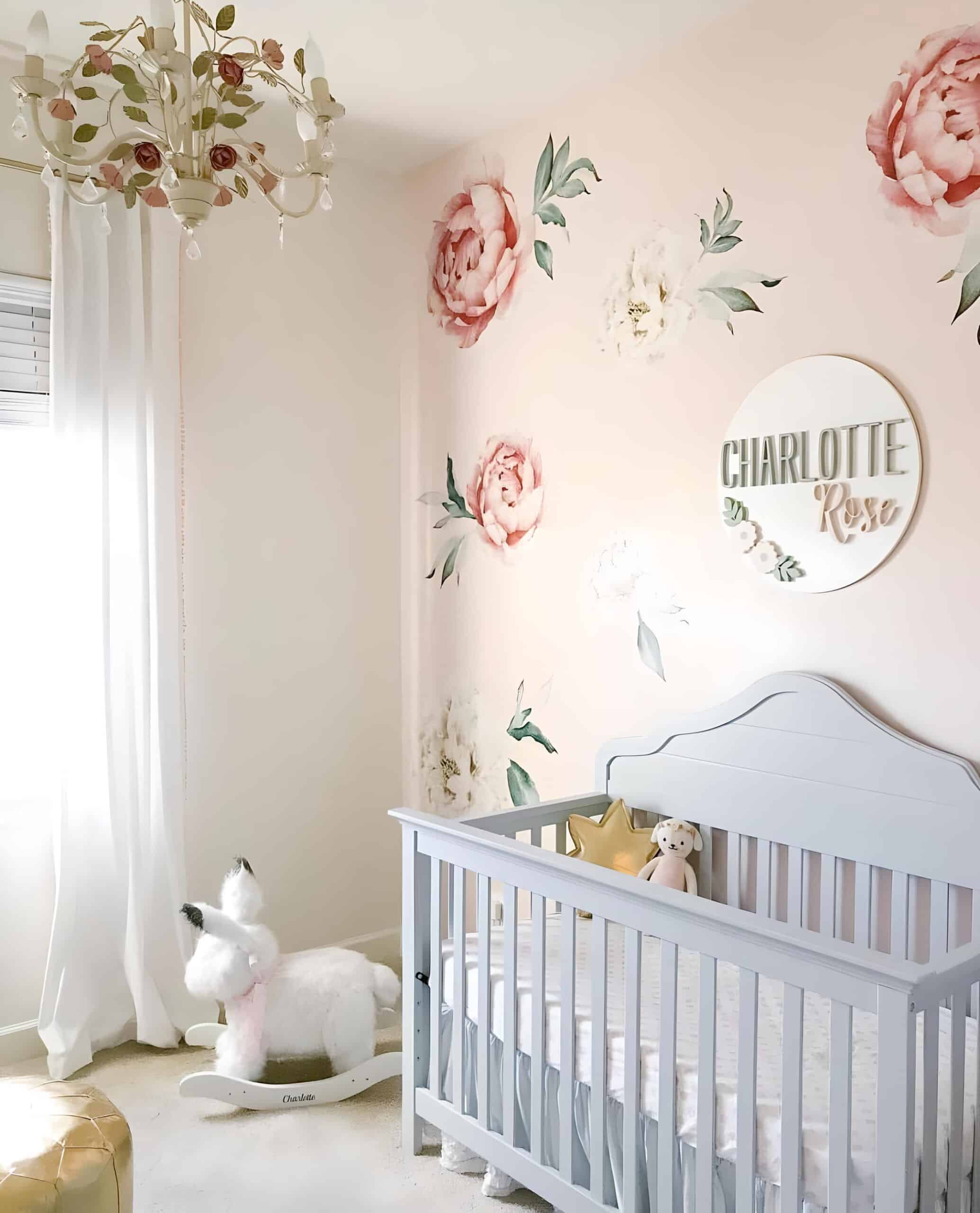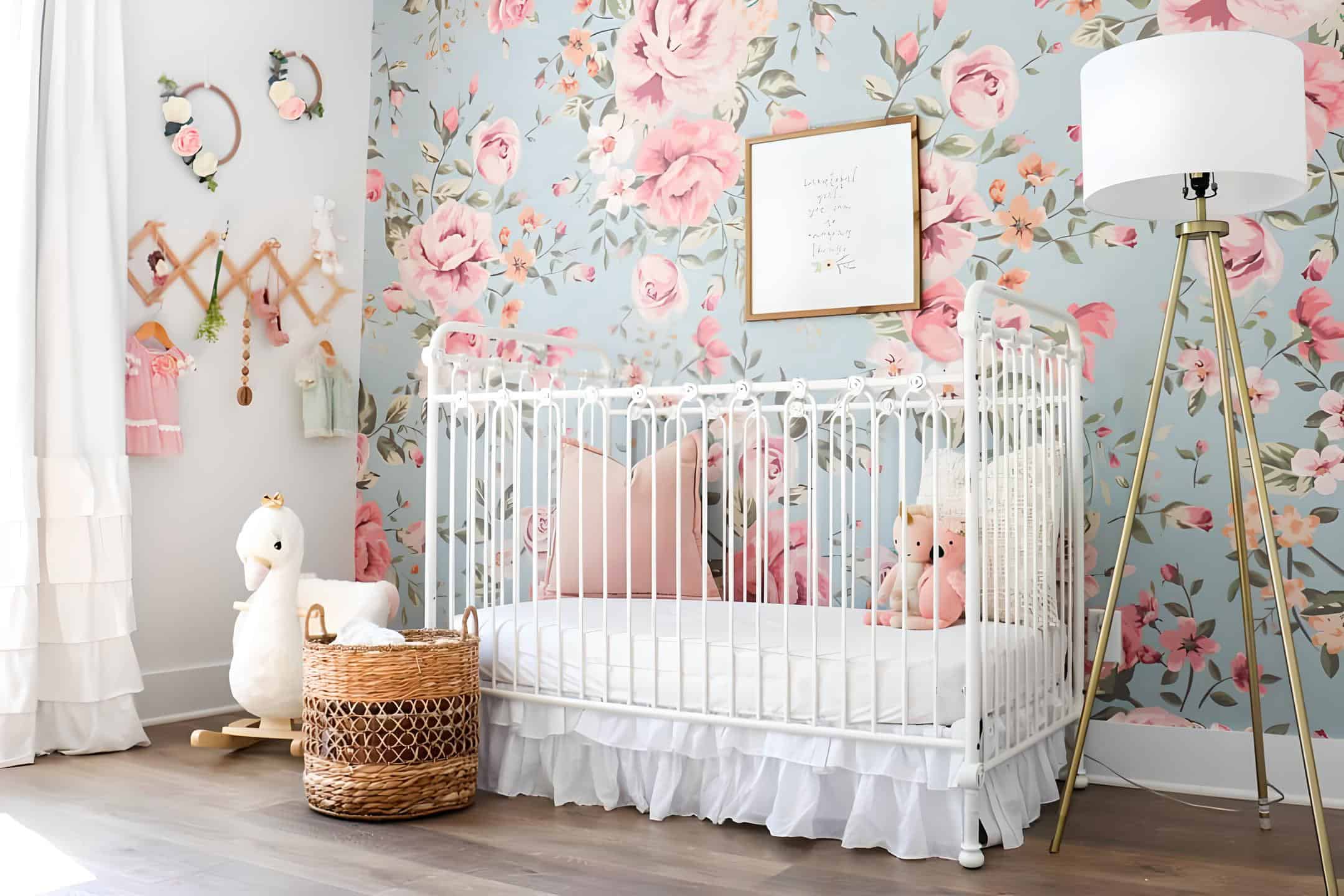 30. A Nursery Infused with Elegant Floral Charm