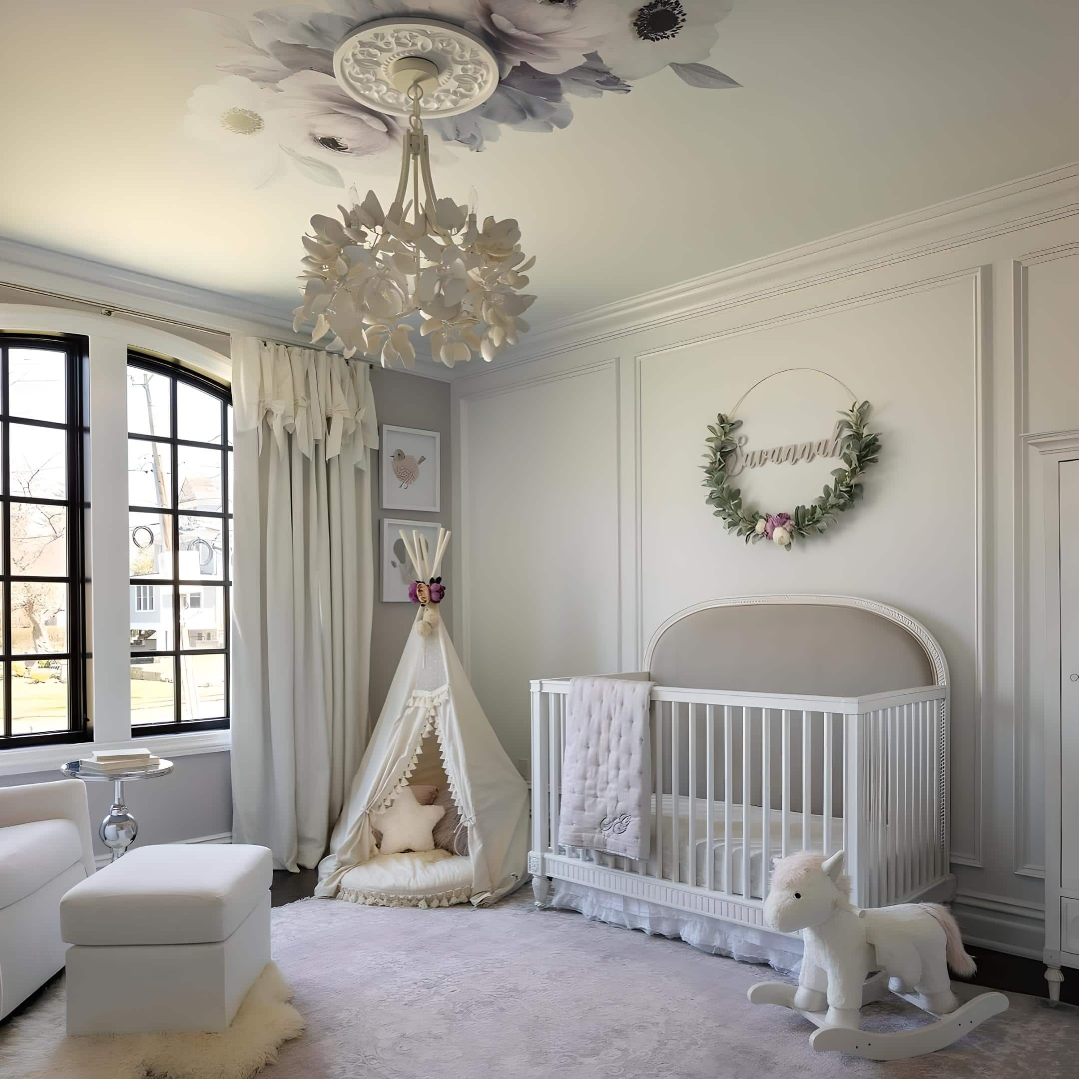 9. Elevate the Nursery With Floral Ceiling Accents
