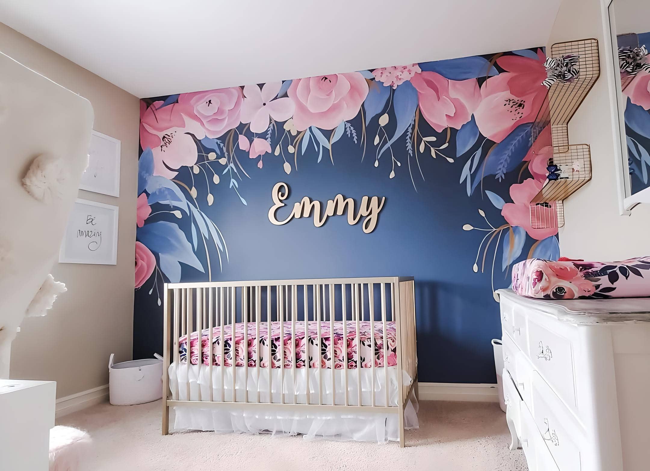 10. Navy Blue Florals for a Thoughtfully Designed Nursery