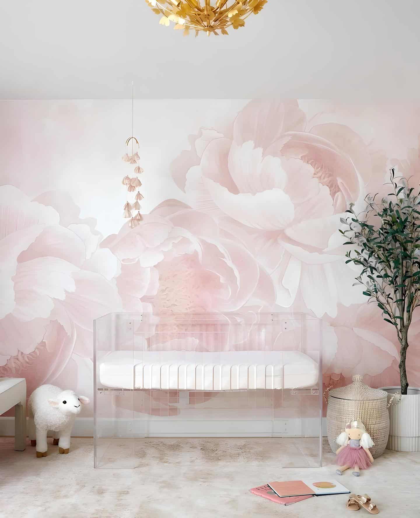 27. Sophisticated Simplicity: A Lush Peonies Mural to Elevate the Crib